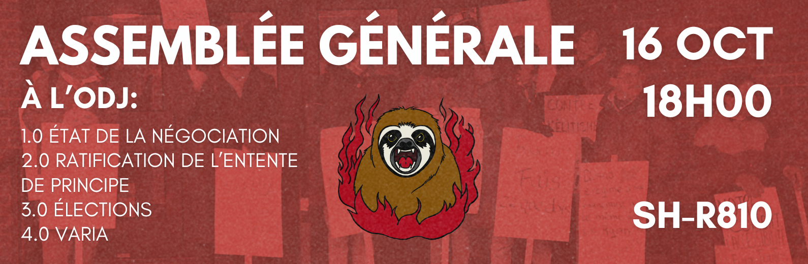 Nous vous convoquons à une Assemblée générale de ratification le jeudi 16 octobre à 18h00 au SH-R810 et en zoom !